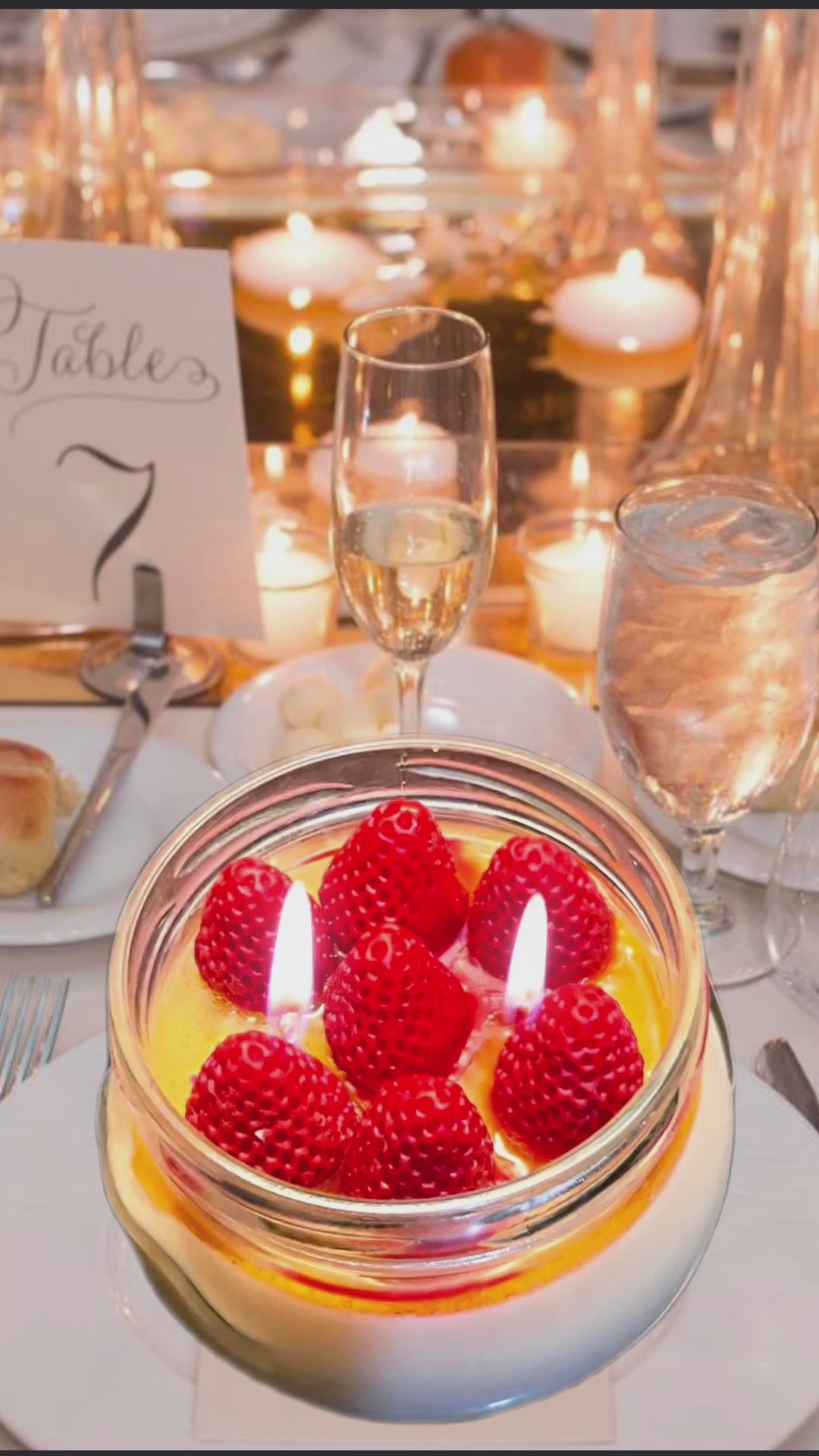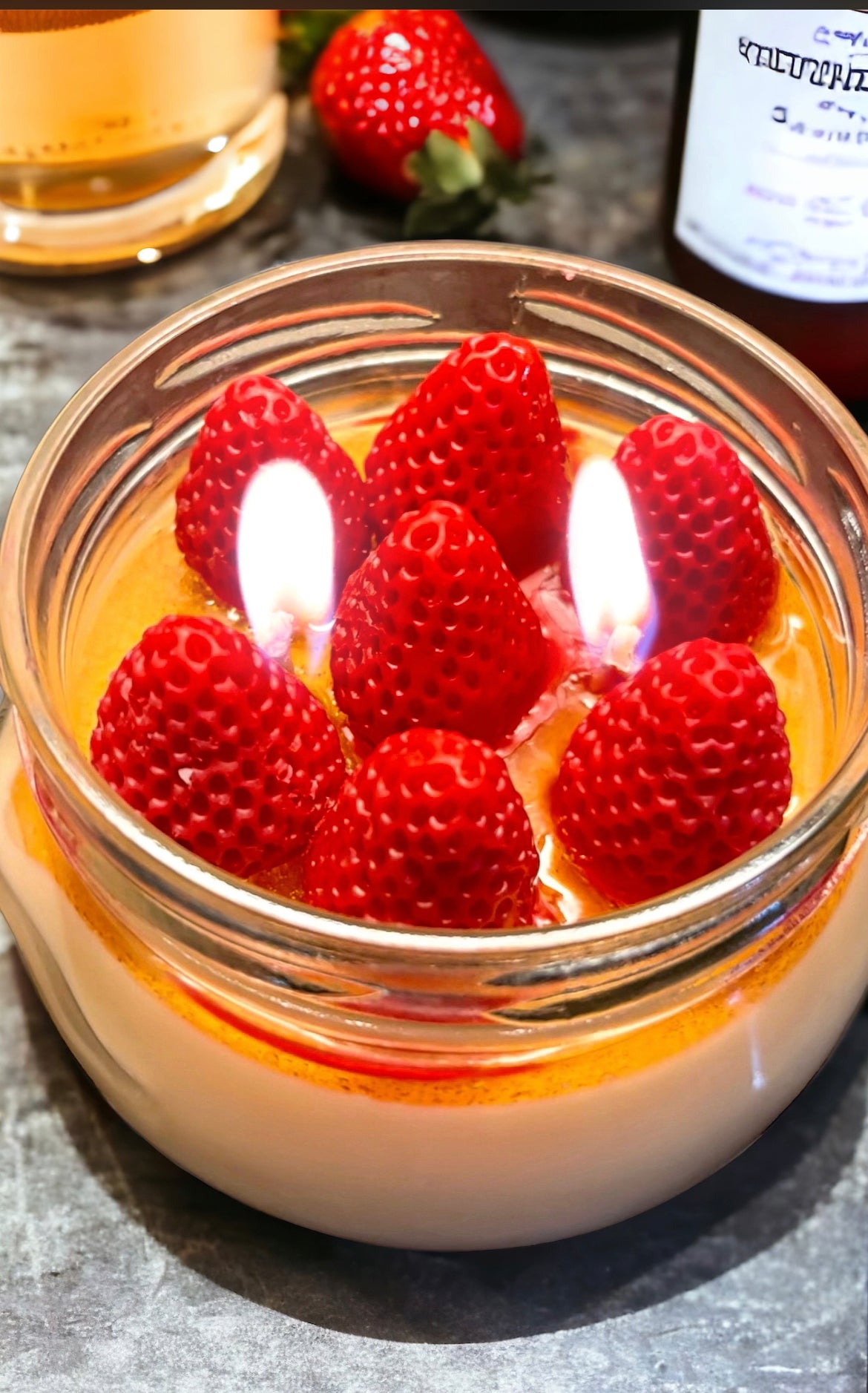 Time to do a toast with our strawberries and champagne jar candle! Pure soy wax scented In champagne with strawberry beeswax molds on top. All of our ingredients are completely non-toxic and phthalate-free.