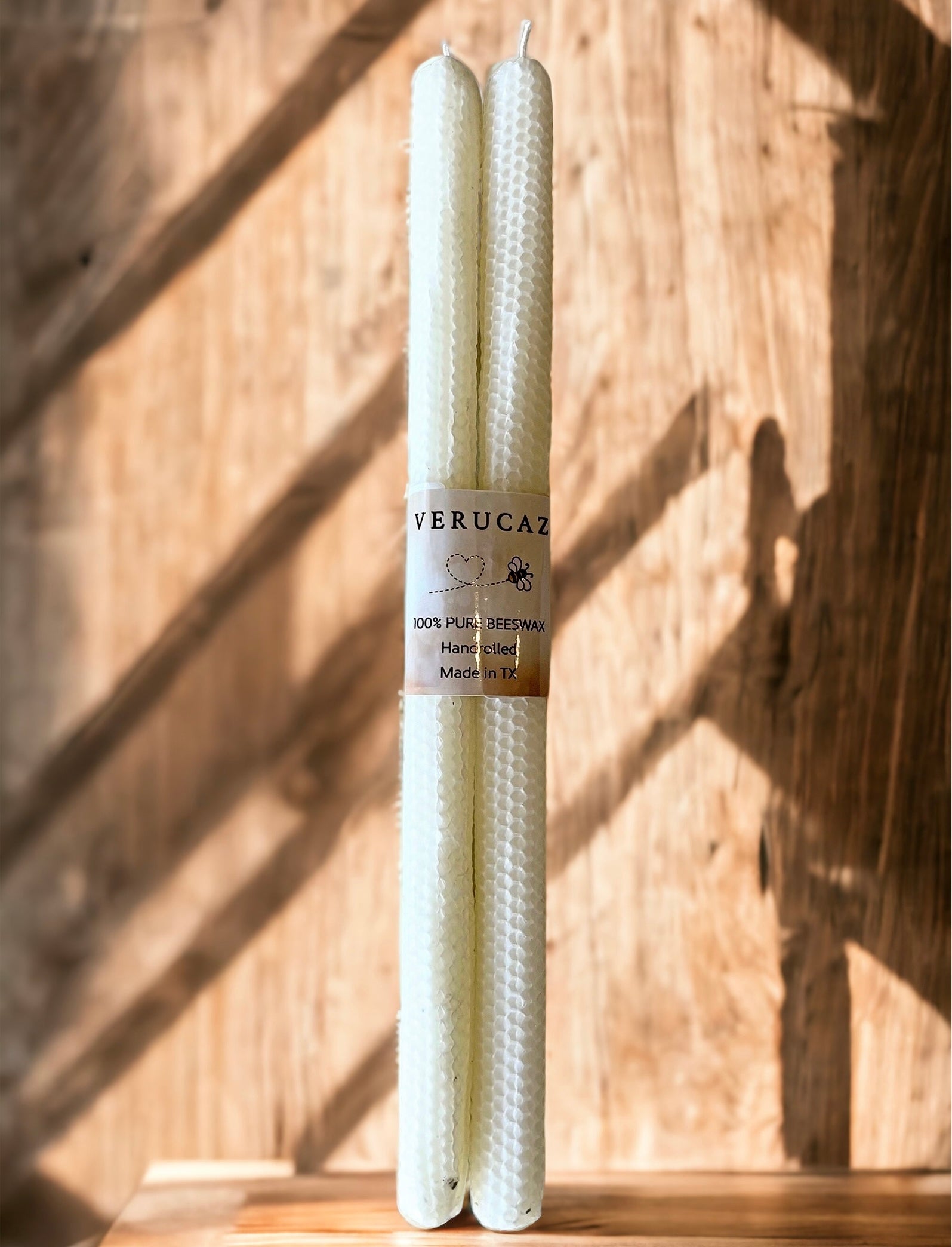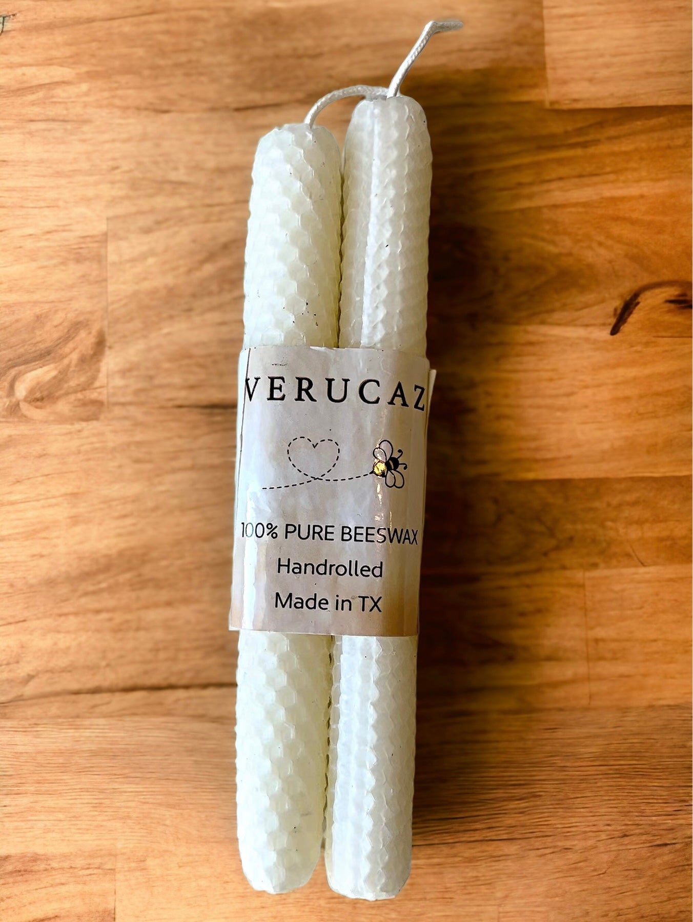 Hand rolled Unscented 100% pure beeswax. Completely non toxic and phthalate free