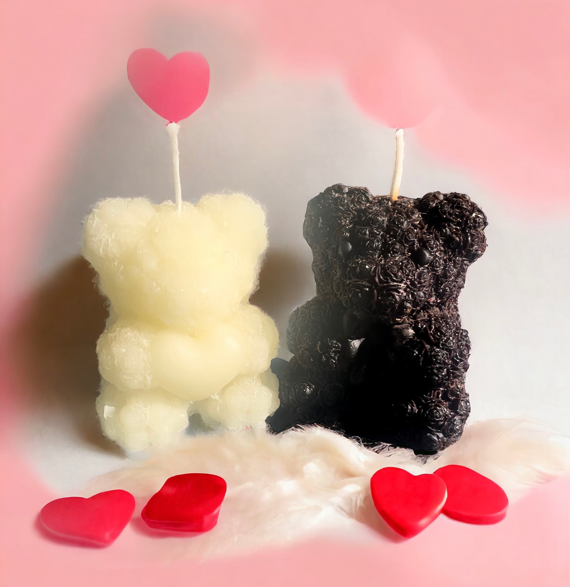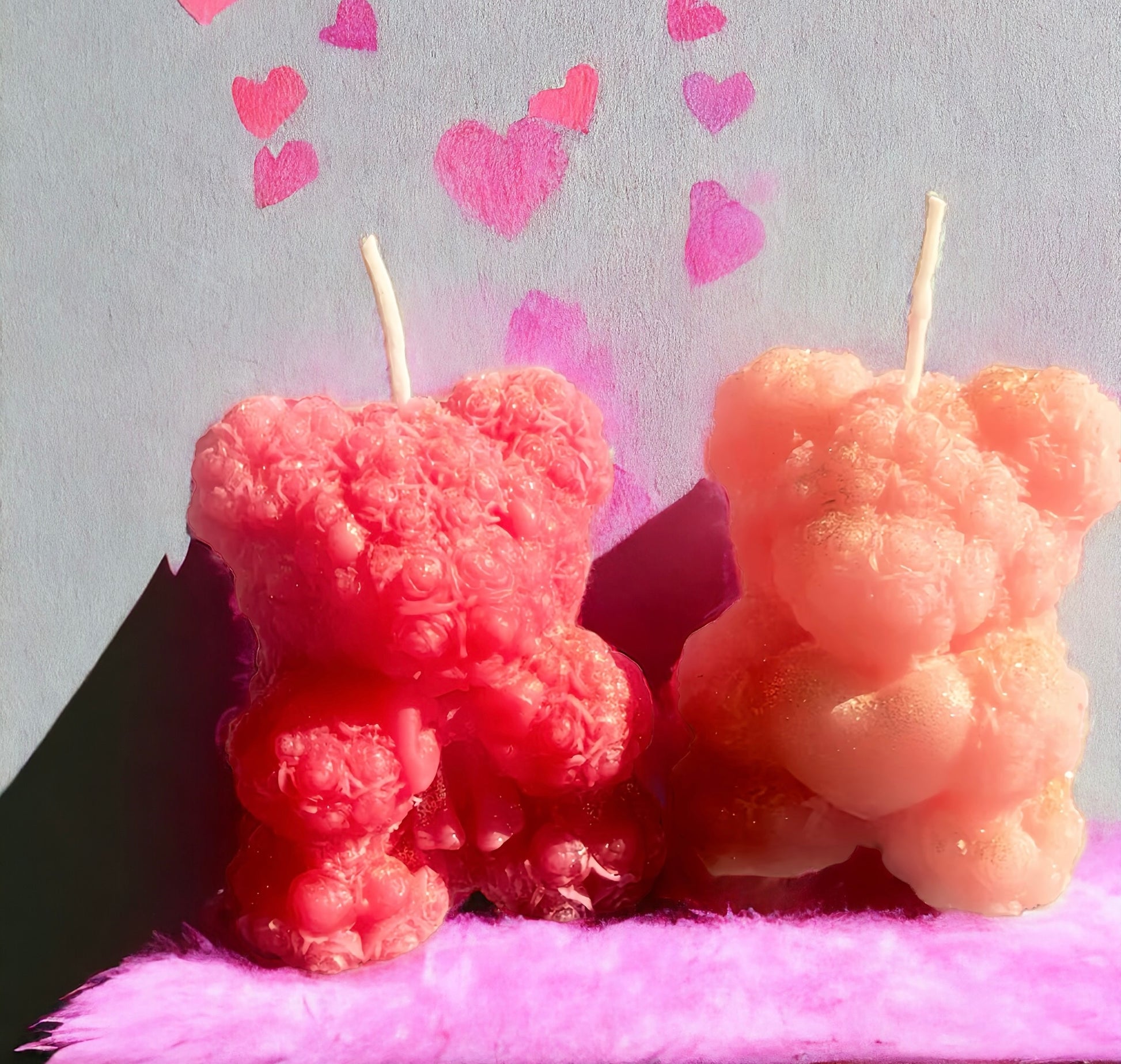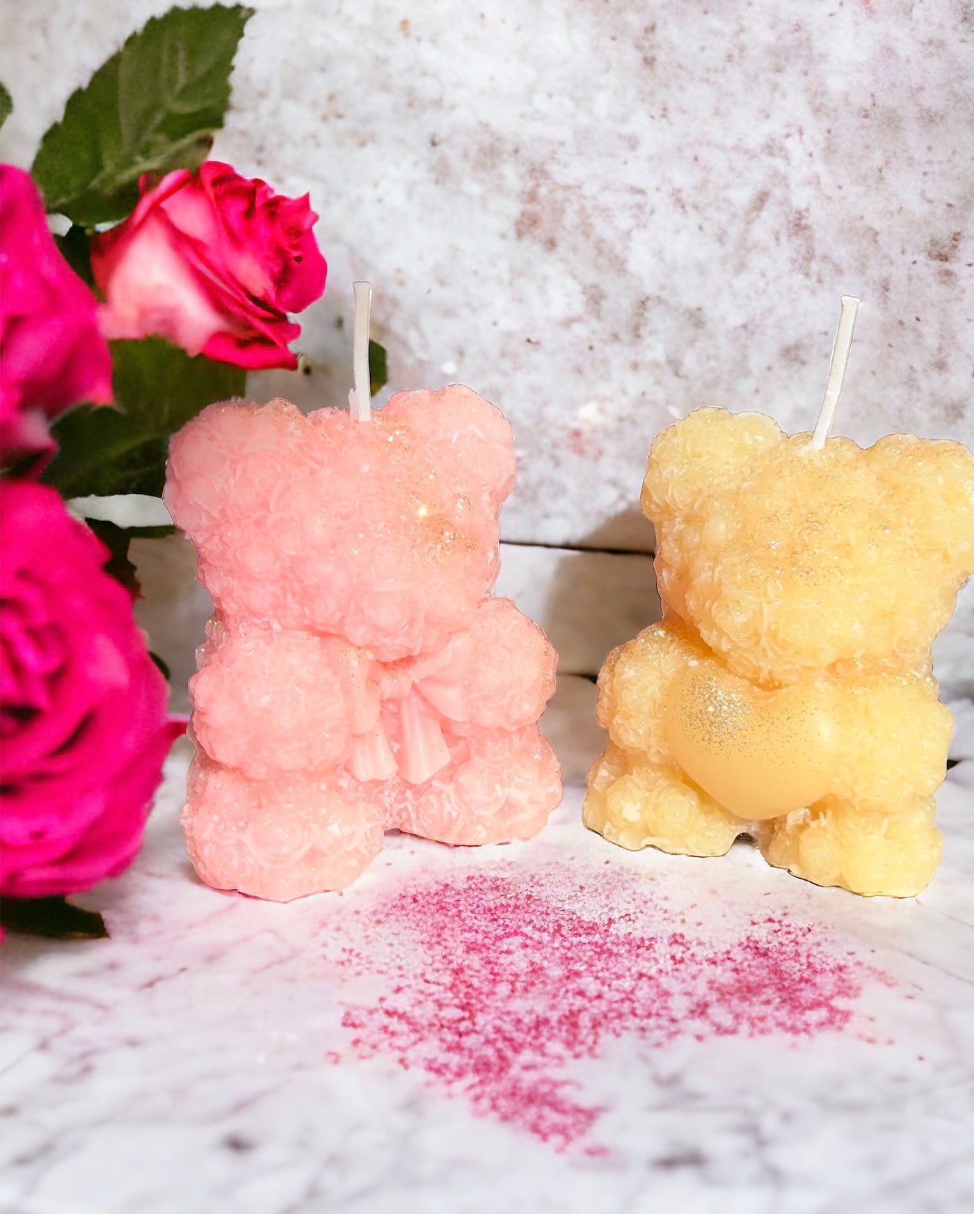 Adorable teddy bear candle set so cute you’ll want to cuddle it! Available in four flavor variations: pink sugar/champagne, pink sugar/cotton candy, white chocolate/dark chocolate, and strawberry/dark chocolate. Made with pure beeswax and flavored oils. All of our ingredients are completely non-toxic and phthalate-free. *1.3 lbs* *20-30 hours of burn time*