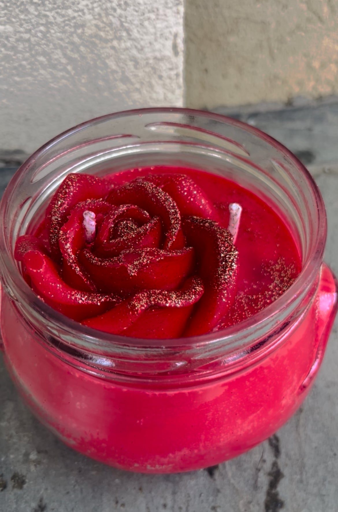 Cinnamon scented soy wax with a coconut and beeswax flower mold on top. Made with carnelian and rose quartz crystals on the bottom for manifesting love and romance. This candle uses pure cinnamon essential oil. All of our ingredients are completely non-toxic and phthalate-free