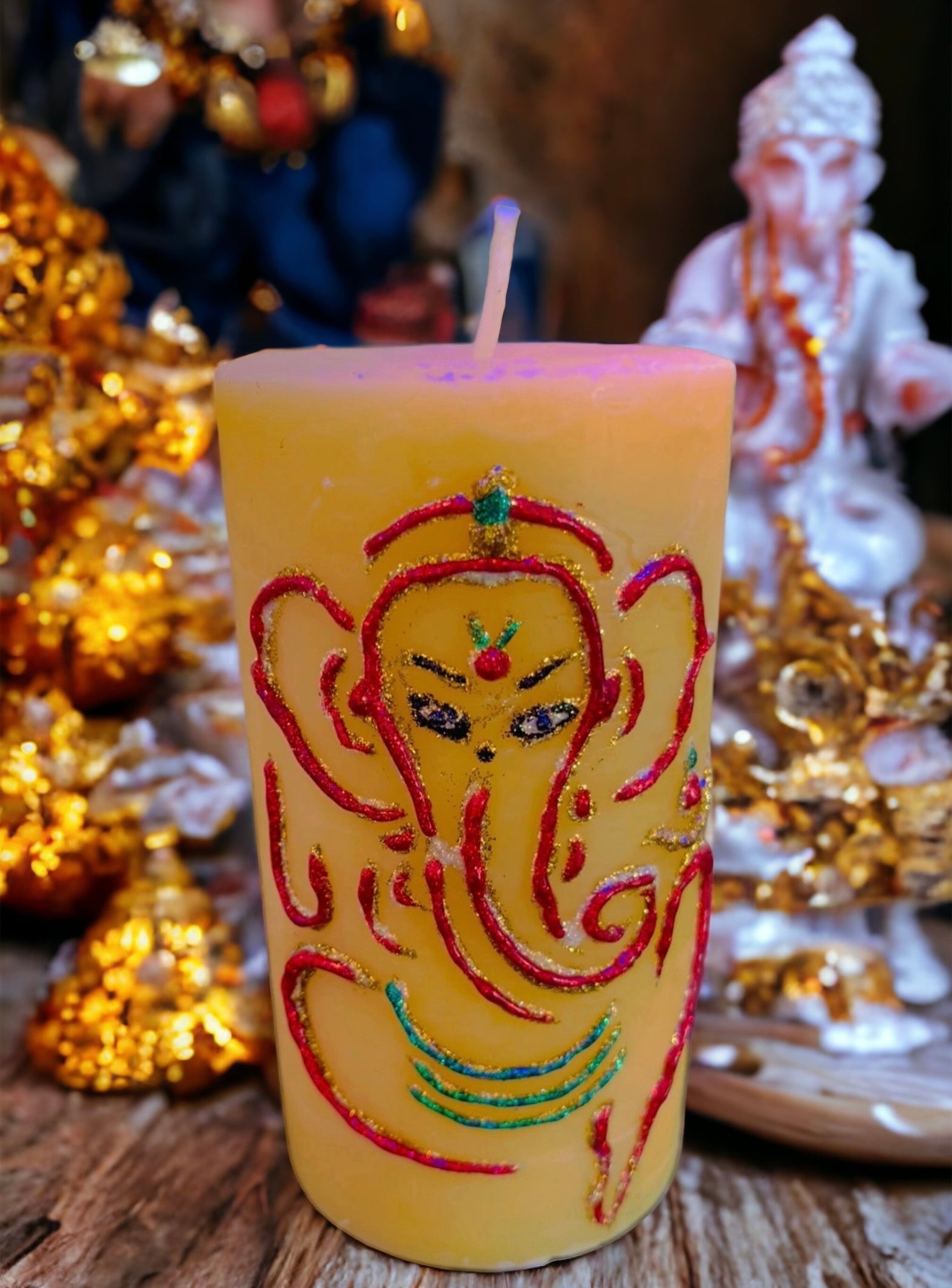 100% Unscented pure beeswax Ganesh candle. With 20 ounces of wax and 80-100 hours of burn time.