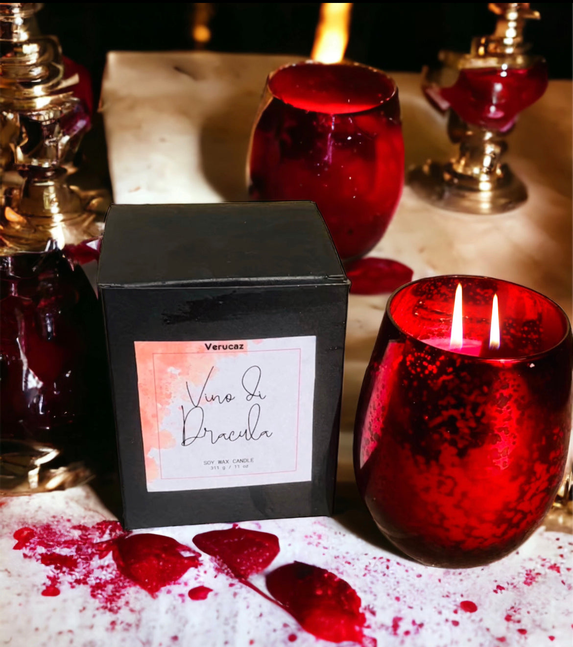 This Dracula inspired candle is made with 100% soy wax and scented in a red currant described to be an easy blend of tart rhubarb and rich cassis melted into earthy greens and fruity musk. So delicious and sweet you’ll be craving another glass or more! All of our ingredients are completely non toxic and phthalate free.